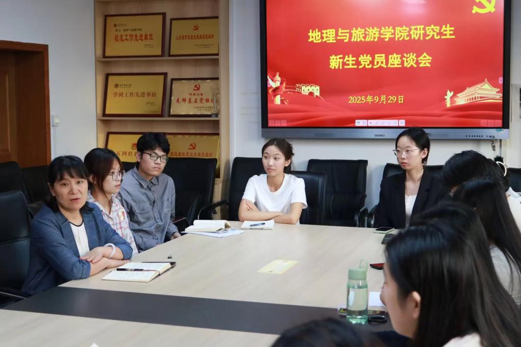 为切实提高新生党员的党性修养,筑牢思想根基,9月29日下午,地理与旅游学院于会馆2401会议室召开2025级研究生新生党员座谈会。学院党委书记苏占兵主持会议,研究生辅导员赵岩、各党支部书记以及2025级研究生党员参加。