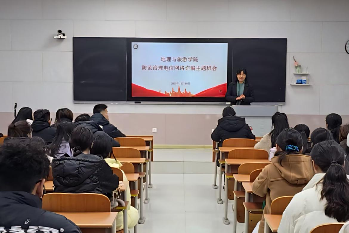 为切实增强研究生防范电信网络诈骗意识,筑牢校园安全防线,11月18日,地理与旅游学院于S205教室召开研究生防范治理电信网络诈骗主题班会。会议由辅导员赵岩主持,2025级全体研究生参加。