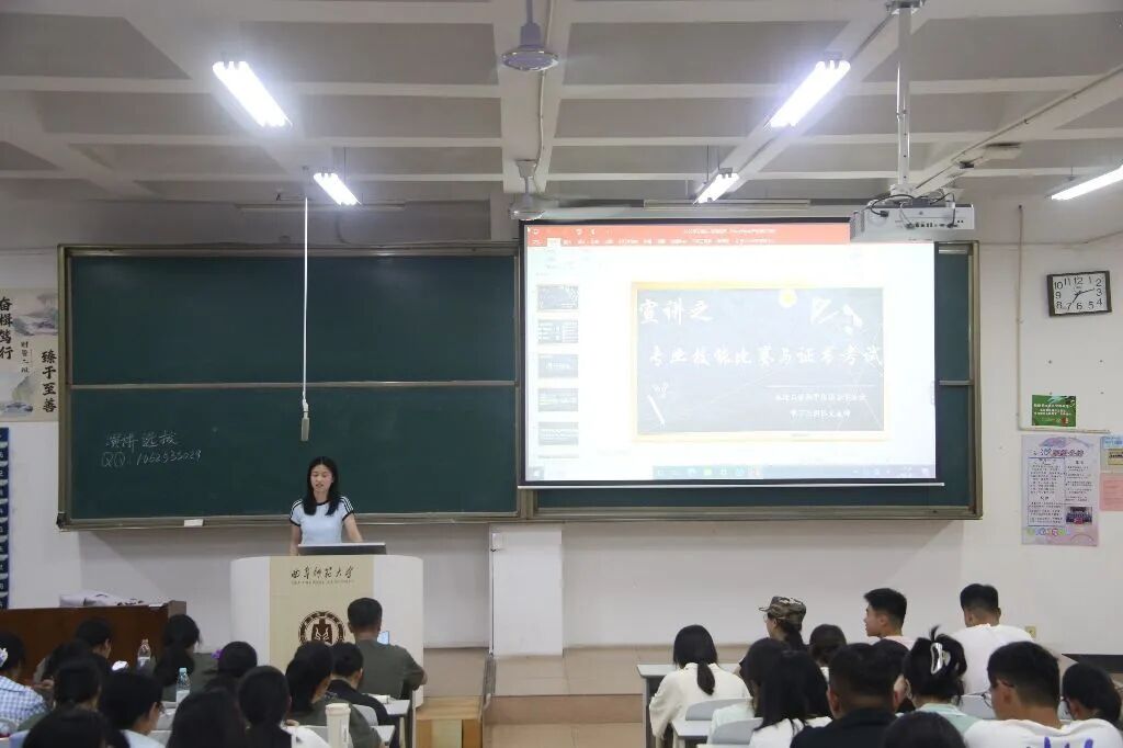 学习与国际交流部主要宣讲各类考试及专业技能比赛,重点介绍山东省师范类高校学生从业技能大赛、全国旅游院校服务技能大赛等专业技能赛事,明确全国计算机等级考试、普通话测试、教师资格证、导游资格证等核心证书备考要点,推动新生夯实专业基础、规划学业路径。
