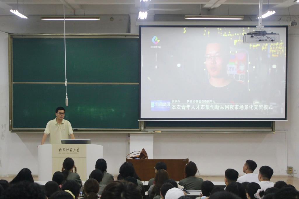 就业服务部聚焦实习实践与高质量就业开展青鸟计划专项宣讲,对青年驿站、岗位对接、人才政策、岗位补贴、住宿保障等方面进行介绍,帮助新生提前熟悉职场、明确职业方向,缓解人岗信息不对称问题。