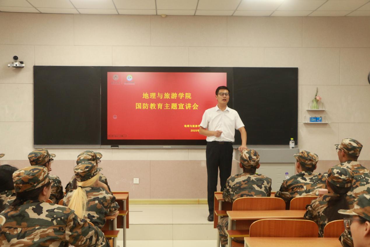 在国防教育主题宣讲中,就业服务部成员通过“国防教育宣传片”展示国家安全形势、国防建设成果及军人使命担当,让新生建立对国防重要性的认知,强化新生的家国情怀与责任担当。