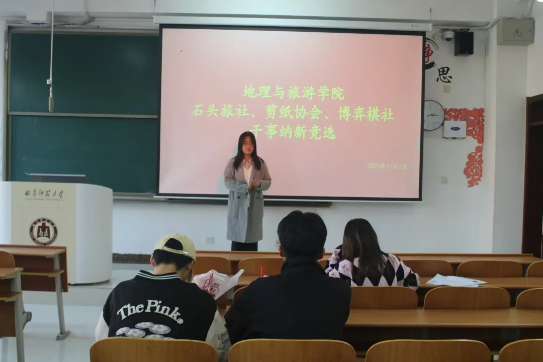 为选拔优秀学生,强化人才梯队建设,助力社团实现高质量发展,11月1日,地理与旅游学院于S102-S105举行社团干事纳新竞选活动。本次活动由我院团委学生会社团管理部承办,2025级同学积极参与。