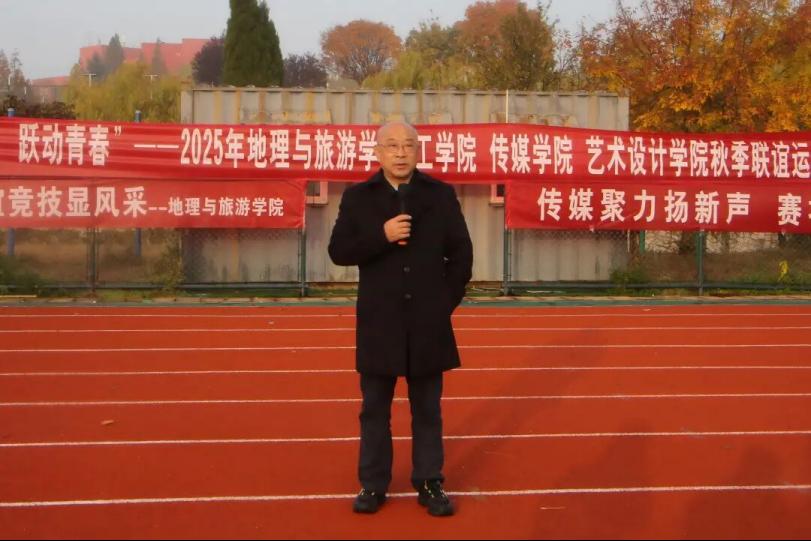为全面落实素质教育、丰富校园文体生活,搭建各学院交流协作桥梁,进一步营造团结奋进、活力交融的校园氛围,11月9日,我院与工学院、传媒学院、艺术设计学院于东操田径场、西操田径场举行秋季联谊运动会。地理与旅游学院党委副书记刘伟、工学院党委副书记肖龙航、艺术设计学院党委副书记宁晓文、传媒学院团委书记张守荣、艺术设计学院团委书记王俊翔、地理与旅游学院辅导员田青、工学院辅导员焦孟娟、工学院辅导员韩宜军、传媒学院辅导员张洪孟、传媒学院辅导员程西永、出席开幕式,各学院学生积极参加联谊运动会。
