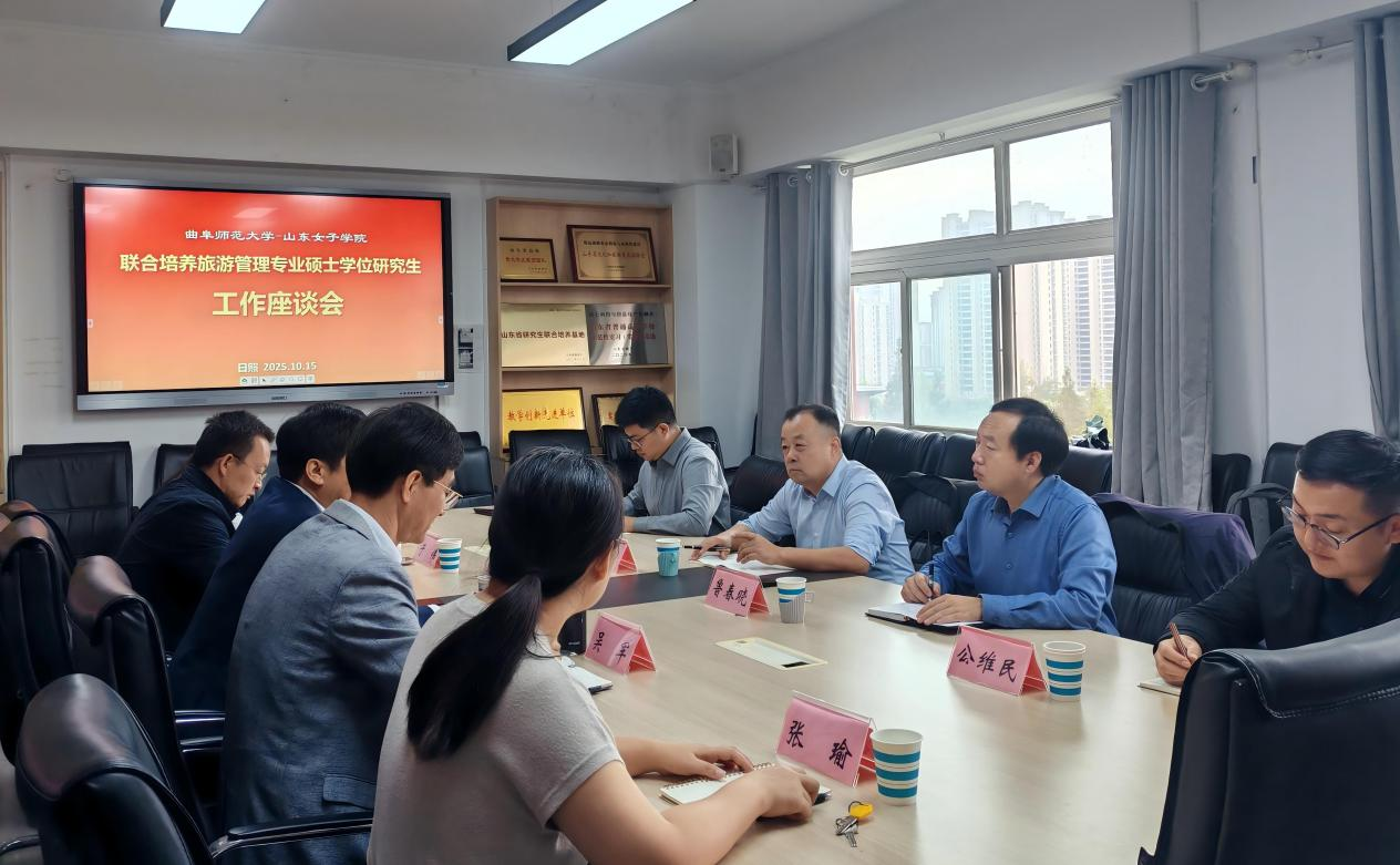 10月15日上午,山东女子学院旅游学院鲁春晓院长率队到访学院,就开展联合培养旅游管理专业硕士学位研究生工作座谈会, 随行的有山东女子学院数据科学与计算机学院张明书记、旅游学院王晓伟副院长、旅游学院公维民博士。院党委书记苏占兵、副院长吴军、于伟出席座谈会,旅游学系主任张瑜、MTA导师代表李梦程参加了座谈会。