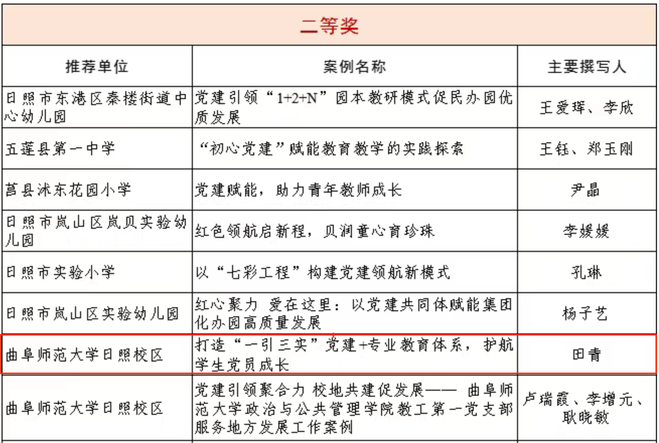 近日,日照市对全市教育系统基层党建工作创新案例评审结果公示。我院本科生第一党支部的党建工作创新案例《打造 “一引三实” 党建+专业教育体系,护航学生党员成长》获二等奖,彰显了我院在推动党建工作与教育教学、人才培养深度融合上的显著成效,为学院党建高质量发展增添了有力注脚。